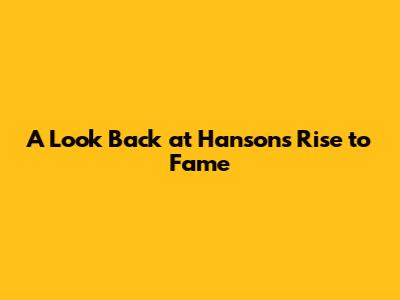 A Look Back at Hanson's Rise to Fame